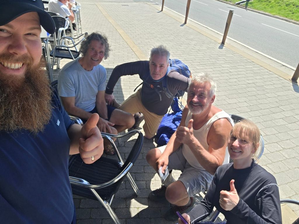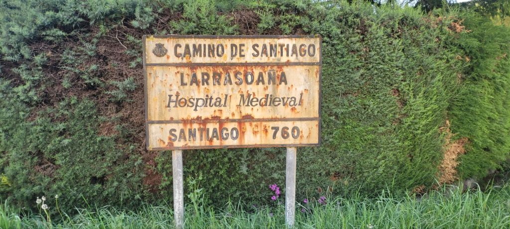 We have now left the Pyrenees and travelling through Basque. country in Spain. Many pilgrims about but definitely not over crowded. Last night we had dinner at the albergue, which was good as I had no energy to walk anywhere. In fact yesterday afternoon I was that knackered, I saw a young lady walking her horse. Through broken english, I offered to buy the horse, but she wasn’t interested. The pilgrim’s meal last night was very thick vegetable soup roast chicken and roast potato slices. Dessert was a chocolate moose and washed down with the local vino. I didn’t need any rocking to get to sleep. Breakfast this morning was a picnic put together by the albergue. Five euro, and it consisted of a banana, a fruit juice, a fruit bar,a crosaint and a ham and cheese sandwich. I bought a nice egg and curitzo baguette for lunch. The walk today was very peaceful and not to strenuous until we got about five kms from Pampolona. Before then mainly through forest. The last five ks was walking through traffic om concrete pavement and 30 plus degrees. Also Jason had to walk extremely slow as he has developed a number of blisters. Jeff managed ok with his back, but was grateful not to have his back pack. We saw Helen and Mark for a fleeting moment, and Allister was with us for part of today’s section. I also met many other pilgrims. Tonight we are in an apartment organised by Jeff prior to the trip, so that will be a nice change from the albergues. Touch wood,so far the albergues haven’t been crowded and all nice and clean. It is rather early in the season.