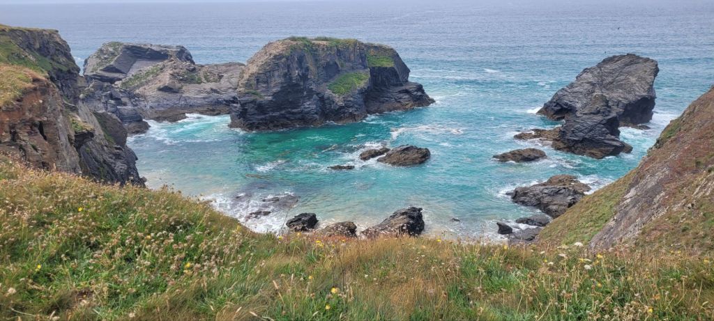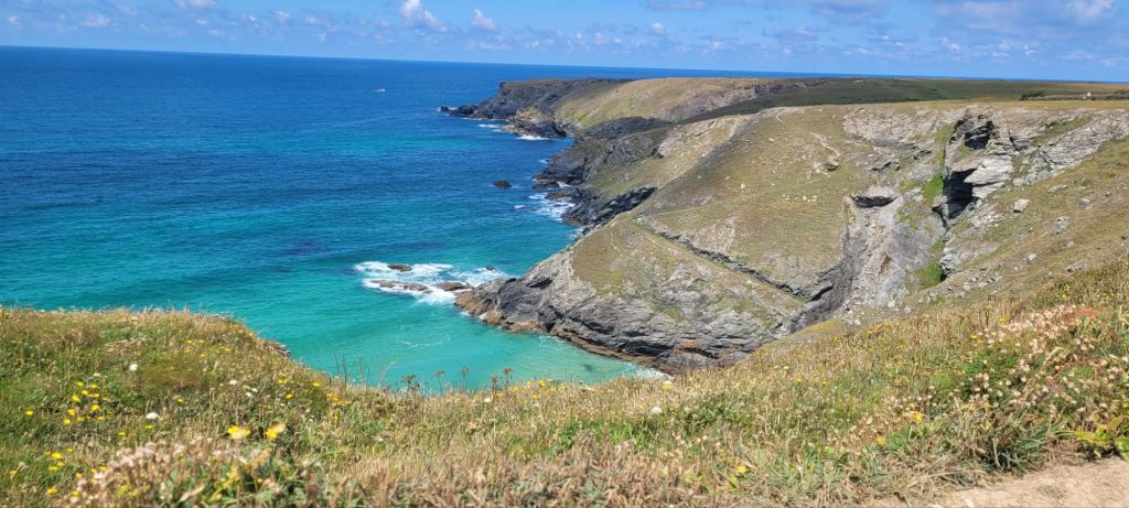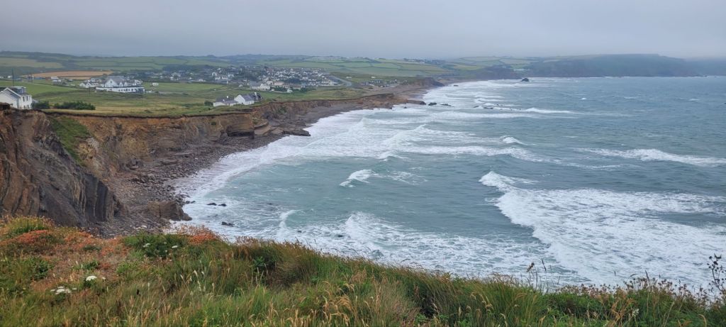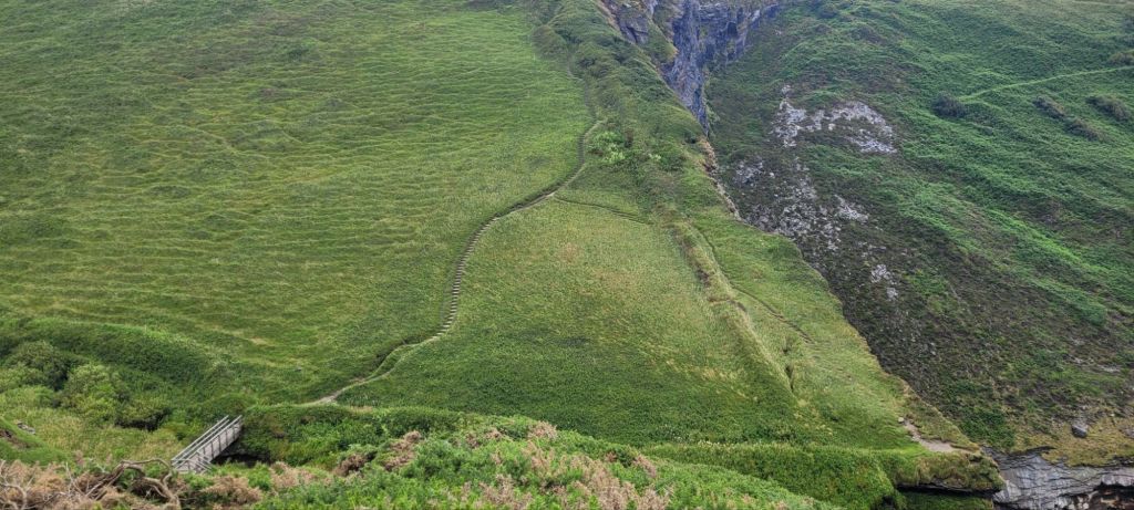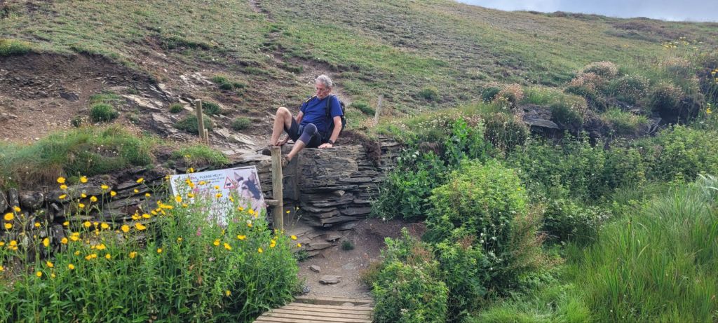 Unfortunately, Randy’s knee is not going to do it today. As much as he doesn’t want to, he will catch the bus, and we’ll catch up later this afternoon. I walked out of the bnb at 8 am under heavy clouds, strong breeze, with an English breakfast in me, as is now definitely the norm. I walked out of the village and spotted a pilgrim about half a kilometre in front of me,and thought this could be my first victim to leave in my rear view mirror, as I knew a big day lay ahead. The walking at this stage was steep through a meadow, and the long wet grass made slow progress. After catching my young 30 year old, and nattering for a km or 2,she said I’m outa here, see you later. As she took off, I thought I’ll see if I can keep about 10 metres behind, and yeah, I was keeping up. After a couple of ks, she stopped to get a stone out of her shoe, and then I took off. Up one cliff, down another, it was relentless. By the time I had reached the sixteen km mark, I knew I needed a rest. I had also run out of water, so I knocked on someone’s door, who filled up my bottle and gave me an extra one, as it being quite warm,said I would need it, as the tough trail I was on was about to get harder with many ascents and dangerous descents. After a half hour rest and changing my socks, I was ready to go again. My 30 year old friend finally caught me as I was changing my socks. I thought I was doing ok, considering I beat her by fifteen minutes. The last 10 kms had another five cliffs to encounter. Some were two hundred plus steps going straight up, and then much the same coming down, remembering, loose slate and stone to combat. Sometimes there were built steps from timber in a very uneven format. Again, the views forward and behind were stunning, and to continually see people that look like ants in front of me, was always a haunting thought, knowing that is where I’m headed. After going hard all day, I finally reached Bocastle at four pm.I found Randy, and we then had to catch a bus to our accommodation. After a forty minute bus ride, we then had a ten minute stroll on a beautiful country road to the mill house inn. On that stroll, my body was in distress. I had a bit of a dry reach.I think a bit of dehydration, heat stroke and absolutely pushing myself beyond the limit may have had something to do with it. Twenty seven kilometres doesn’t sound a lot, but the terrain made it the hardest day I have ever encountered. Lots of local people I spoke with told me most people do this section over two days. I now understand the logic in that.I staggered up a couple of flights of stairs and fell asleep in a hot bath. Randy did the smart thing and went to the bar. I eventually got my self dressed and joined him for dinner. Eight forty that night, I was stacking zzzzzeds.