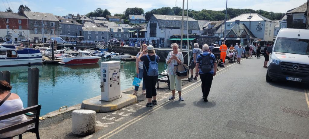 Talking to my lovely on messenger Not sure you can zoom it in, but the bees are red Wish I could have been on one of those speed boats Stopped for a cool lime and soda at this beach bar Off the ferry in Padstow